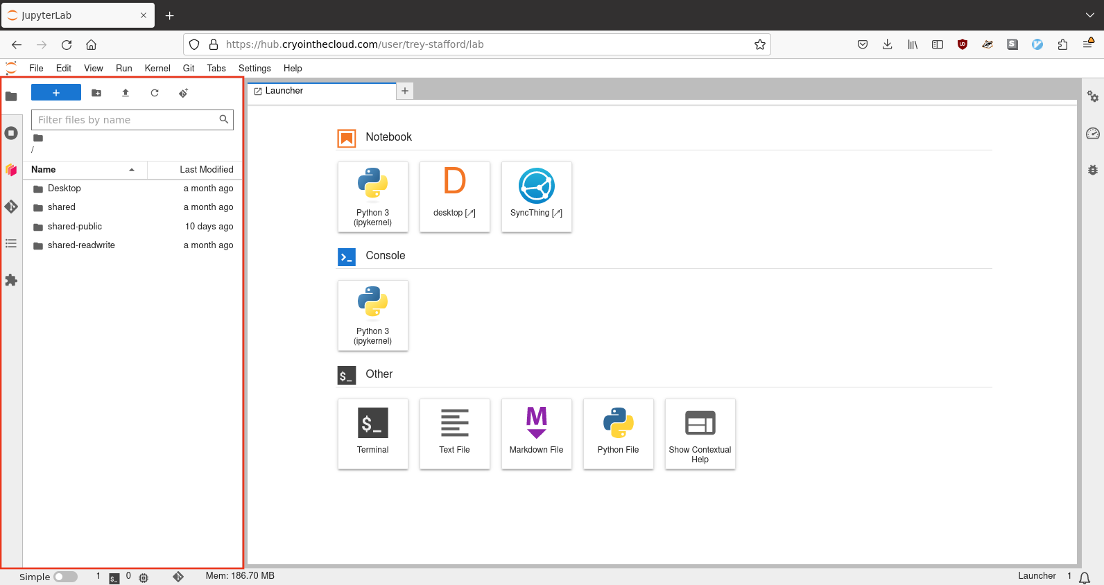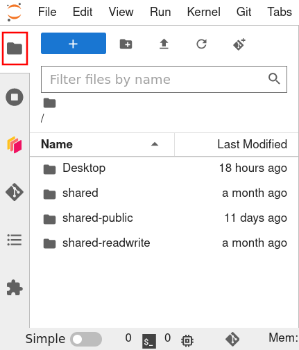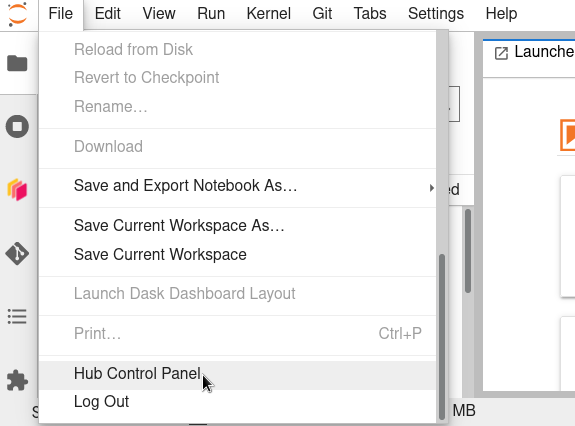 If you accidentally close a terminal or notebook tab, you can re-access it by clicking on its entry here.