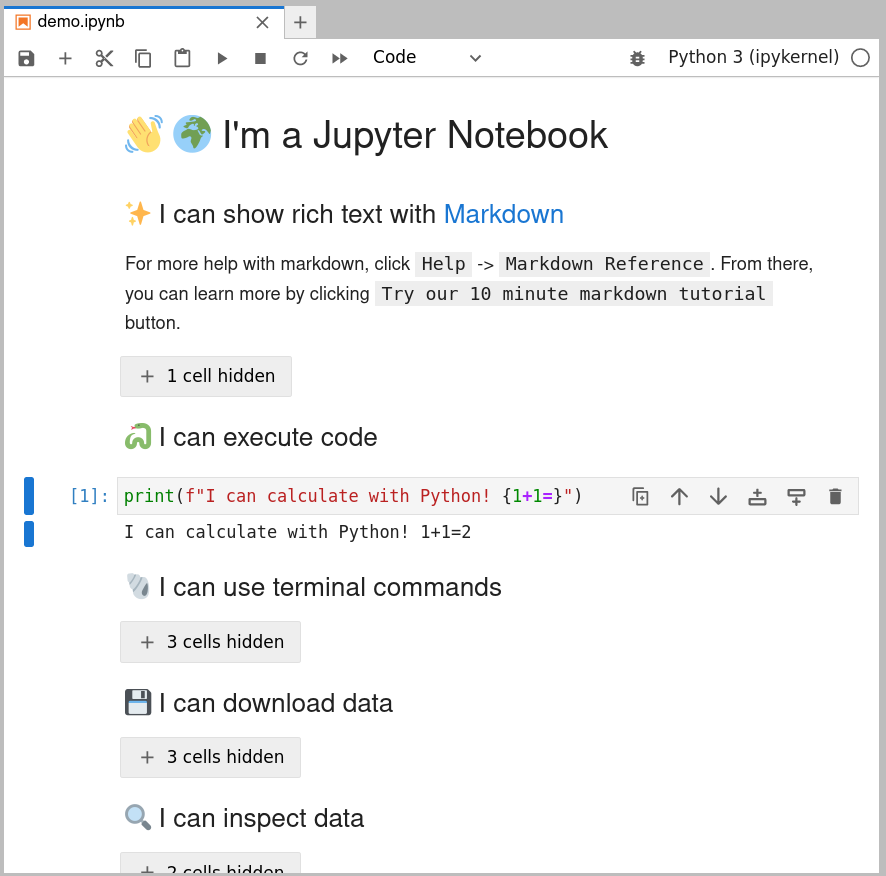 We are going to demo a number of features around the use of JupyterLab in the following slides. Please plan to watch as we explain various features before trying them yourself in an exercise after the presentation.
